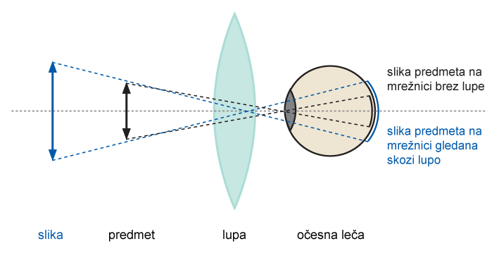 Lupa ali povečevalno steklo je optični pripomoček za branje manjših, prostemu očesu težje berljivih besedil oziroma črk. Povečana slika vam omogoča lažje branje in razbremeni napetost ciliarnih mišic. Zbiralna leča, ki povečuje zorni kot opazovanega predmeta (besedilo), je najpomembnejši del lupe